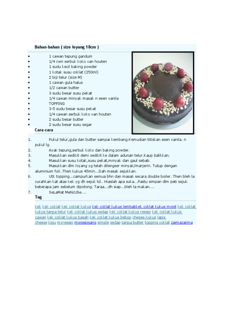 Resepi Kek Coklat Sedap